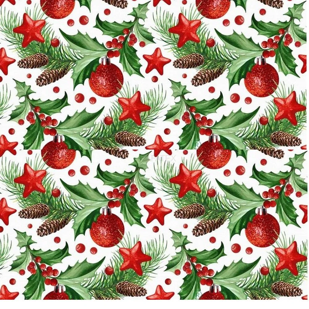 Na bílém podkladu jsou krásné červeno zelené vánoční vzory.