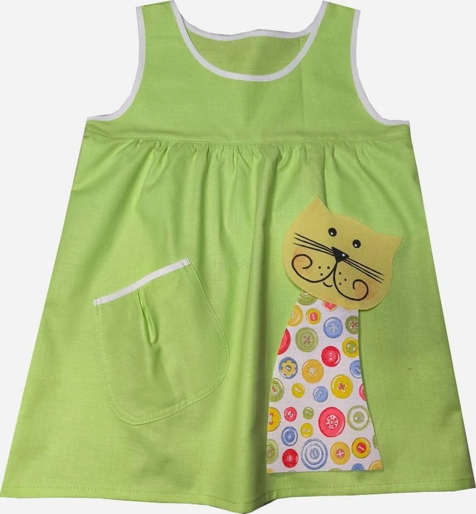 Tato dívčí zástěrka je nabraná do sedélek, má 1kapsu, je oblékaná přes hlavu a stále častěji je používána jako šatičky. Na předním díle je aplikace kočičky. Aplikace je domalována nezávadnou barvou na textil - Öko-Tex Standard.