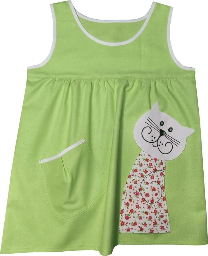 Tato dívčí zástěrka je nabraná do sedélek, má 1kapsu, je oblékaná přes hlavu a stále častěji je používána jako šatičky. Na předním díle je aplikace kočičky. Aplikace je domalována nezávadnou barvou na textil - Öko-Tex Standard.